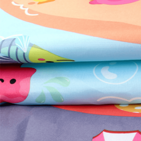 Materialul textil este de înaltă calitate, cu imprimeuri vii care nu se estompează și atrag privirea celor mici.