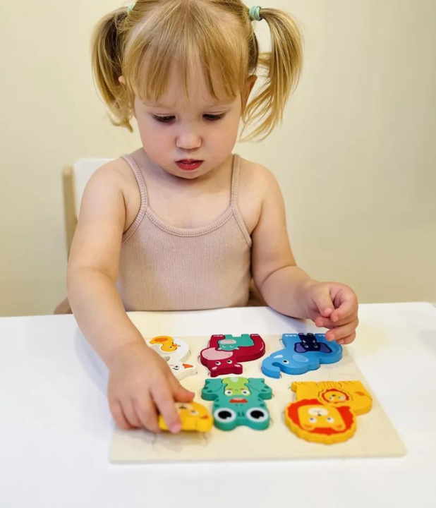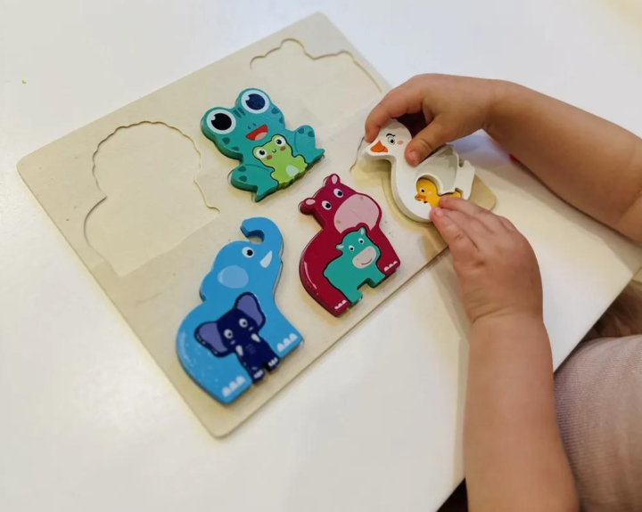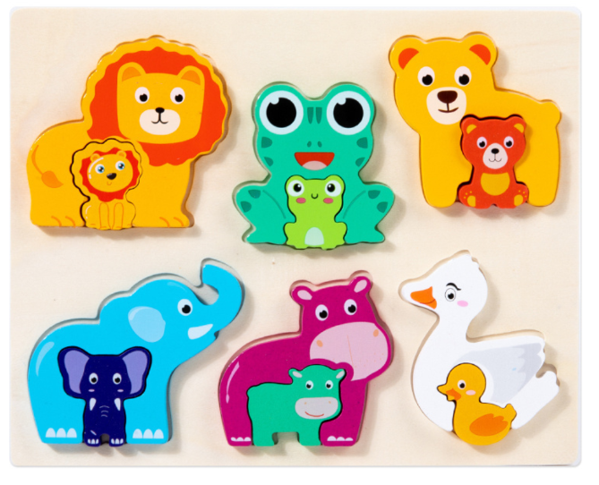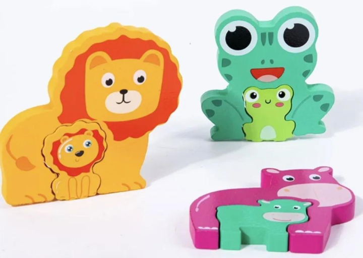 Acest puzzle de lemn special aduce împreună animalele și puii lor, oferind copiilor o modalitate distractivă de a învăța despre legătura dintre părinți și pui.