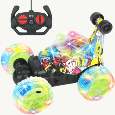 Decorată cu grafice îndrăznețe și echipată cu roți mari și luminoase cu LED, mașina este gata să impresioneze de la prima utilizare.