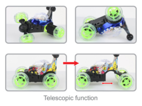Controlul la distanță permite manevre spectaculoase și cascadorii impresionante, inclusiv rotații la 360° și funcția telescopică pentru mișcări dinamice.