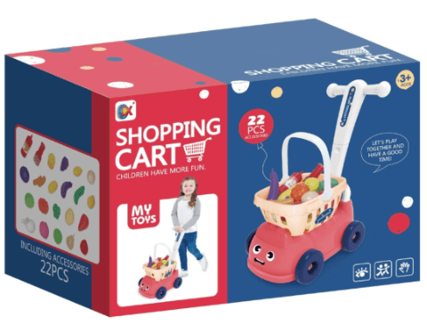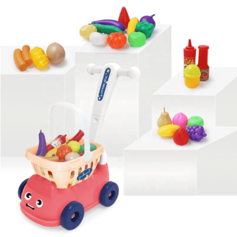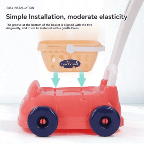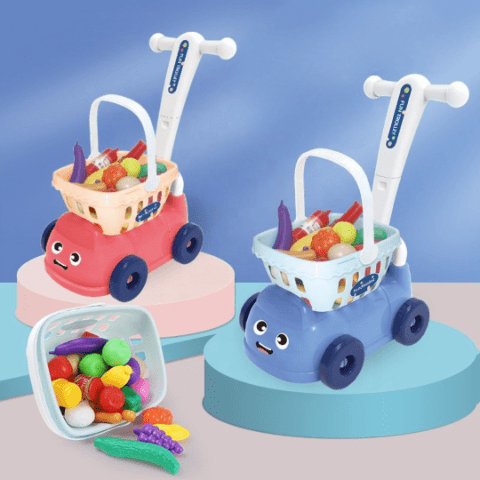 Căruciorul de cumpărături transformă orice copil într-un mic explorator al pieței, gata de joacă și învățare.