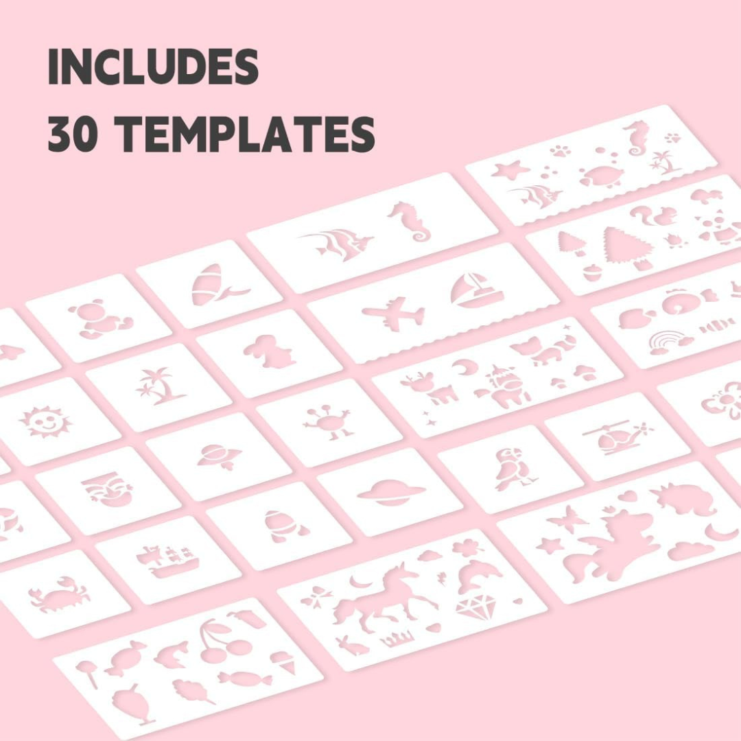 Setul vine cu 30 de șabloane diferite, oferind multiple opțiuni de design și imaginație.