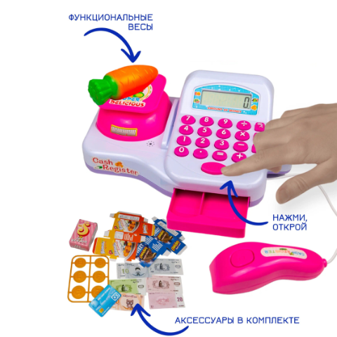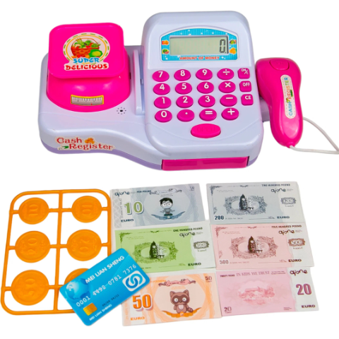 Casa de marcat cu funcție de calculator și scaner oferă realism jocului și îi ajută pe cei mici să învețe să calculeze.