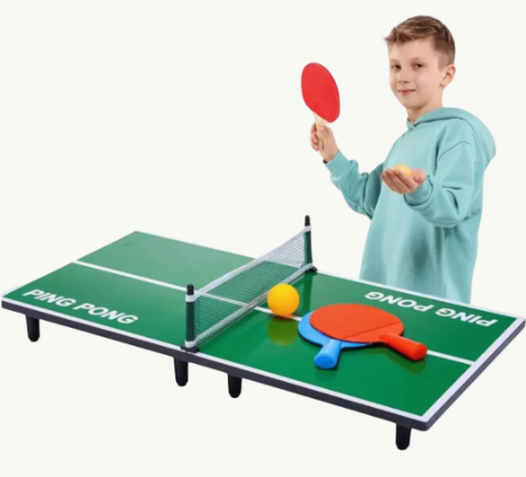 Această mini masă de ping-pong este perfectă pentru micii sportivi care vor să se bucure de un joc clasic într-un format potrivit pentru copii.