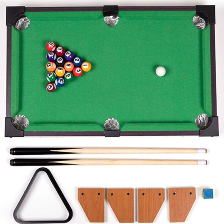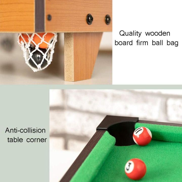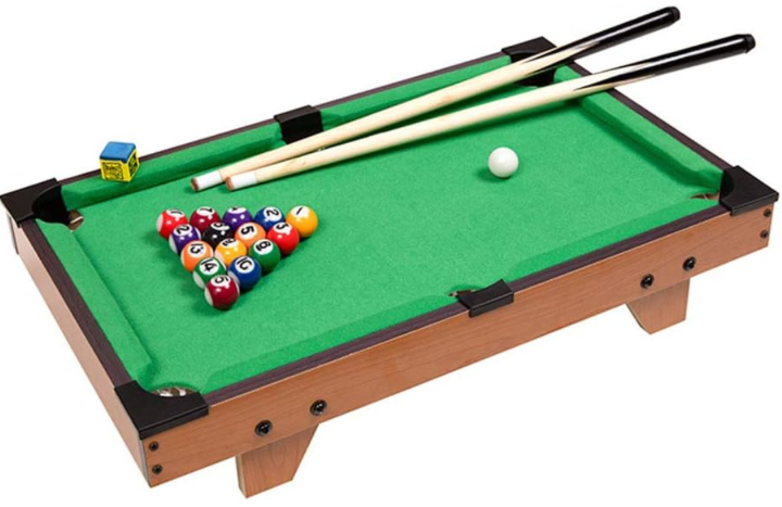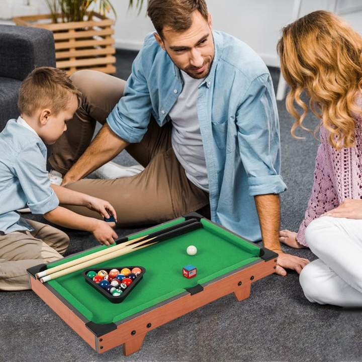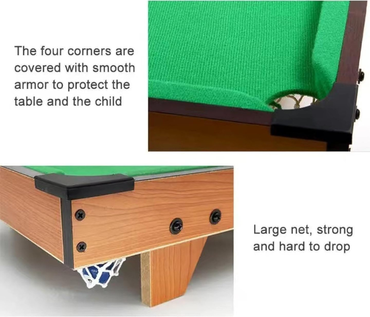 Această mini-masă de biliard oferă distracție clasică într-o formă compactă, perfectă pentru micii entuziaști ai jocurilor de masă.