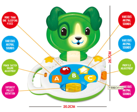 Fiecare buton declanșează melodii vesele, sunete de animale sau lecții simple despre litere și forme.