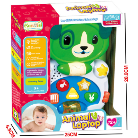 Laptopul interactiv cu tematică de cățeluș este perfect pentru primii pași în învățare, captivând atenția celor mici prin culori vibrante și sunete distractive.
