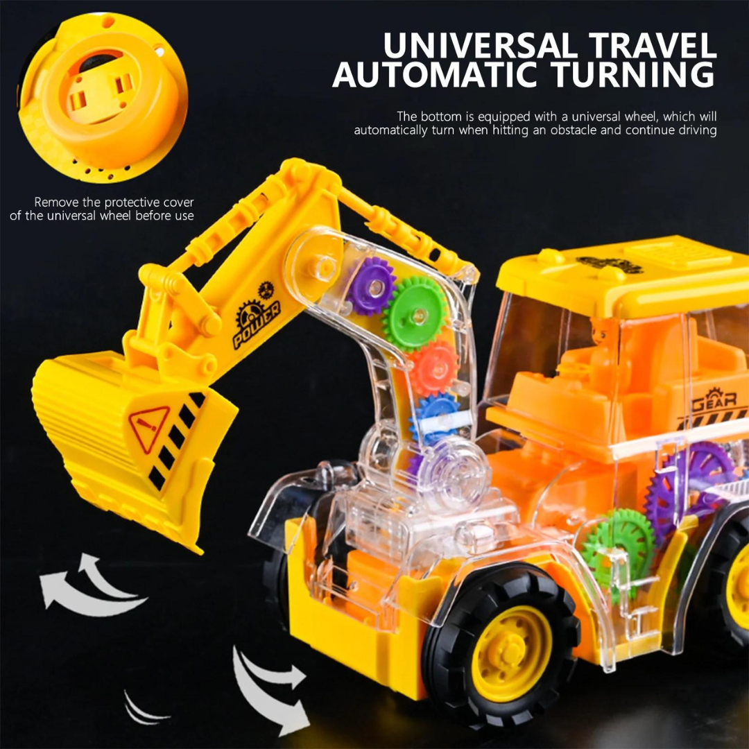 Explorează lumea construcțiilor cu acest excavator mecanic transparent, echipat cu o structură de roți dințate colorate care își dezvăluie mecanismul fascinant!