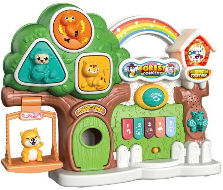 „Concertul din Pădure” oferă un pian cu cinci taste colorate, fiecare emite un sunet diferit pentru a stimula simțul muzical al celor mici.