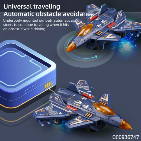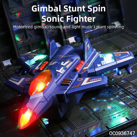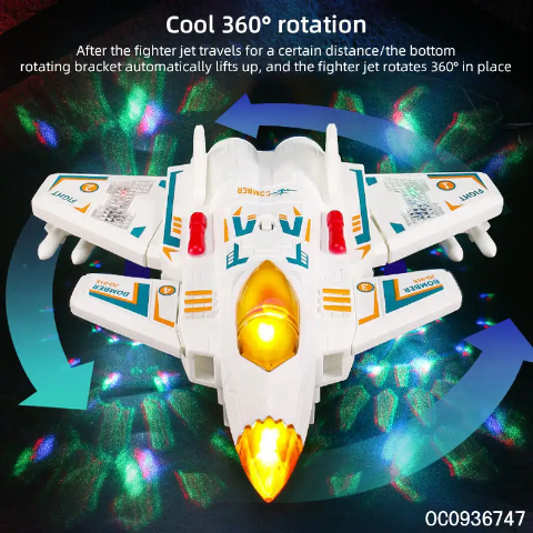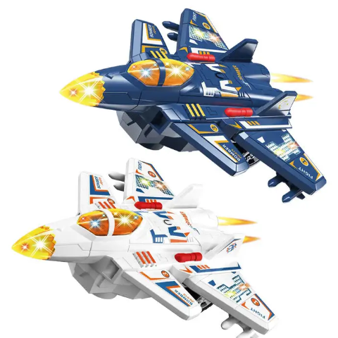 Acest avion de luptă futurist captează atenția imediat cu culorile sale vibrante și luminile intermitente.