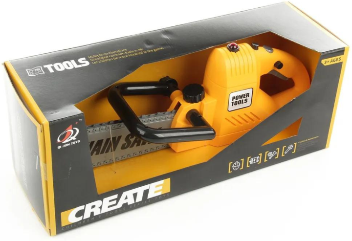 Ușor de utilizat, fierăstrăul este dotat cu un lanț din plastic sigur pentru copii, ceea ce face joaca complet inofensivă.