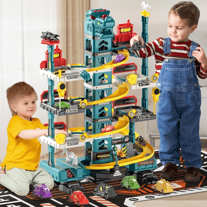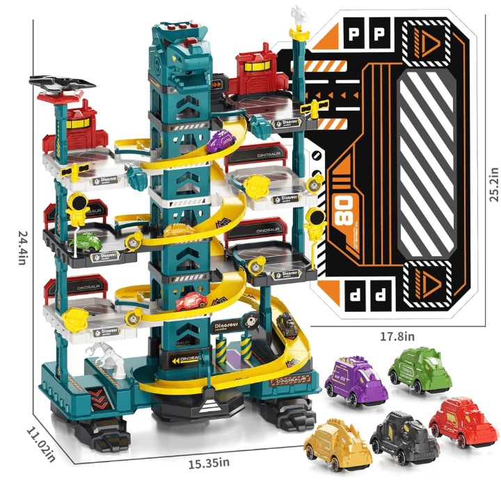Acest garaj interactiv cu tematică de dinozauri aduce un nivel nou de distracție pentru micii exploratori.