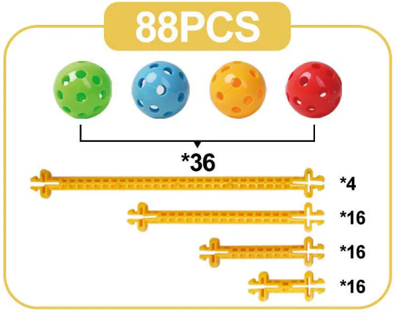Folosind bile colorate și tije flexibile, cei mici pot crea modele complexe care seamănă cu moleculele, dezvoltându-și abilitățile de gândire logică, creativitate și coordonare mână-ochi.