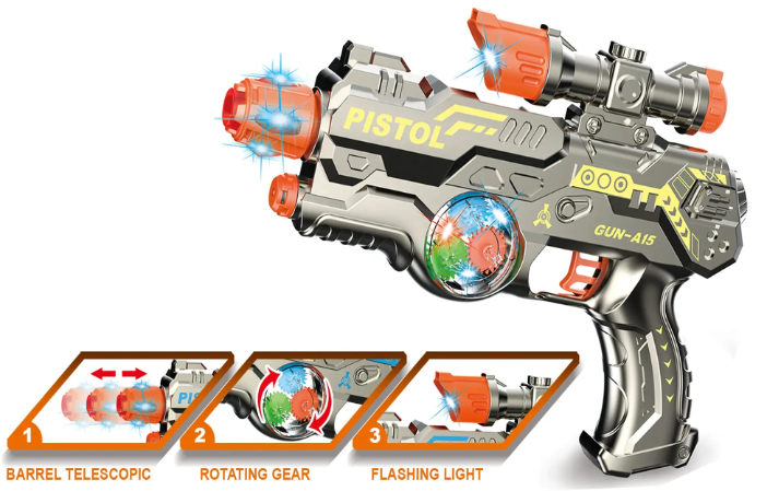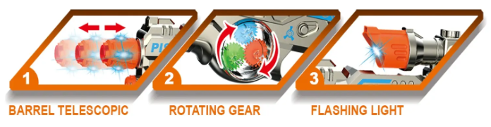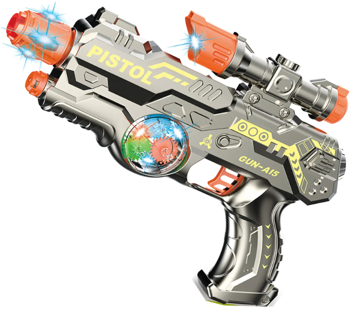 Pregătește-te pentru o aventură plină de acțiune cu acest pistol futurist!