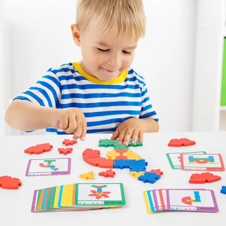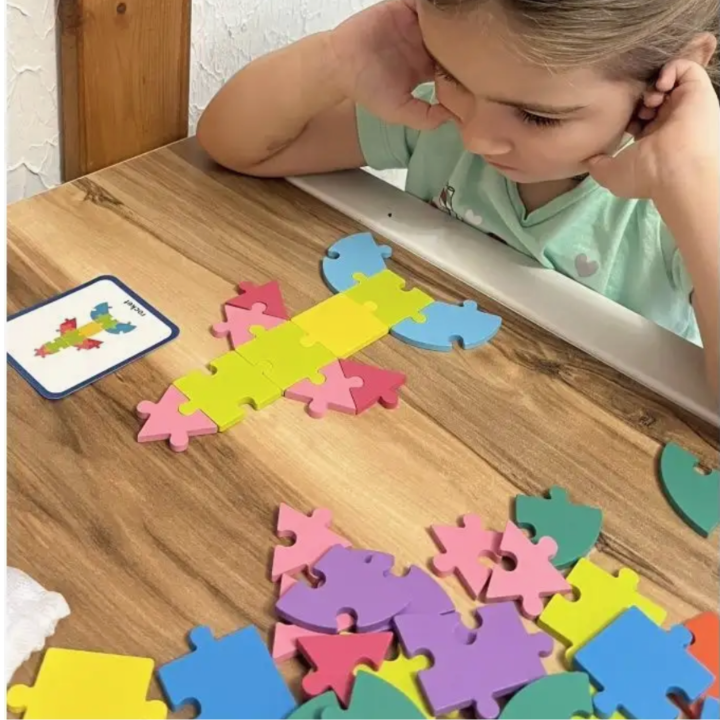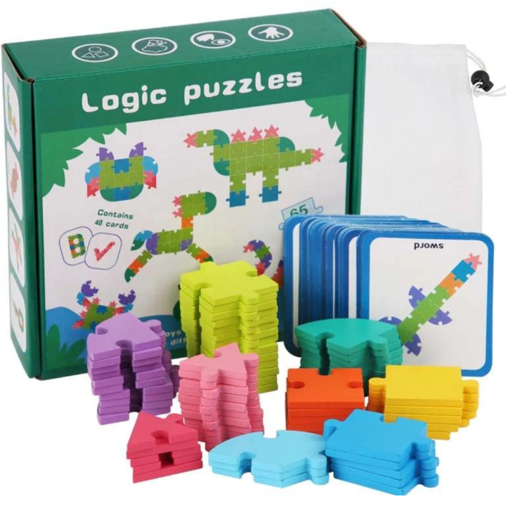 Acest set de puzzle logic creativ din lemn este ideal pentru copiii curioși, oferind o modalitate excelentă de a stimula imaginația și gândirea logică.