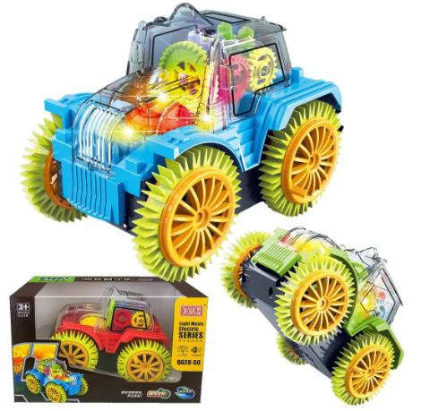 Această mașinuță de cascadorie se rostogolește, se întoarce și impresionează prin efectele sale de lumină și sunet.