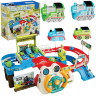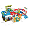 Copiii pot transporta vehicule pe rampe și piste, dezvoltându-și imaginația și coordonarea mână-ochi.