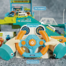 Acest set colorat este dotat cu un volan interactiv care emite sunete realiste, transformând joaca într-o experiență unică.