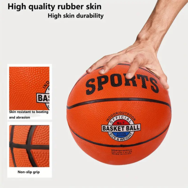 Această minge de baschet de mărimea 7 este ideală pentru antrenamente și meciuri recreative, fiind potrivită pentru terenuri de joc atât în sală, cât și în aer liber.