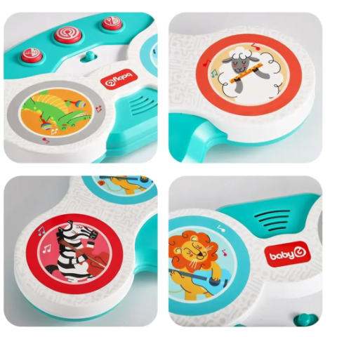 Acest set de tobe este ușor de utilizat, permițând copiilor să atingă sau să lovească suprafața pentru a activa sunetele muzicale.