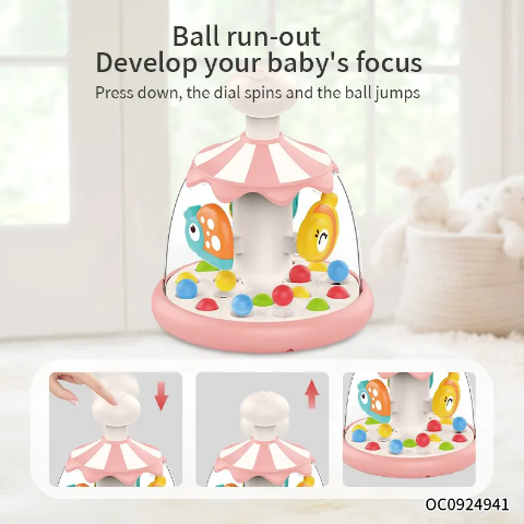Acest carusel rotativ captivant este conceput special pentru a atrage atenția celor mici, oferindu-le o experiență de joacă plină de culoare și mișcare.