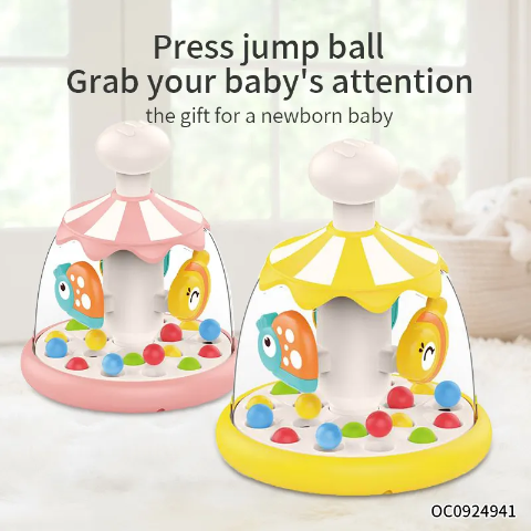 Bilele colorate din interior se rostogolesc și sar, stimulând simțurile vizuale și dezvoltarea coordonării mână-ochi.