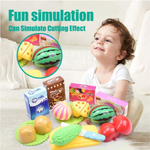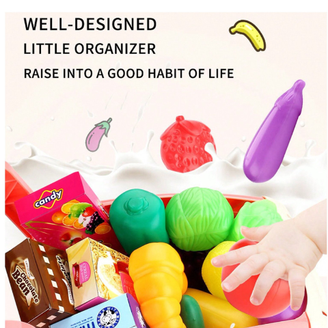Setul conține fructe și legume vibrante, care stimulează imaginația copiilor și încurajează jocurile de rol.