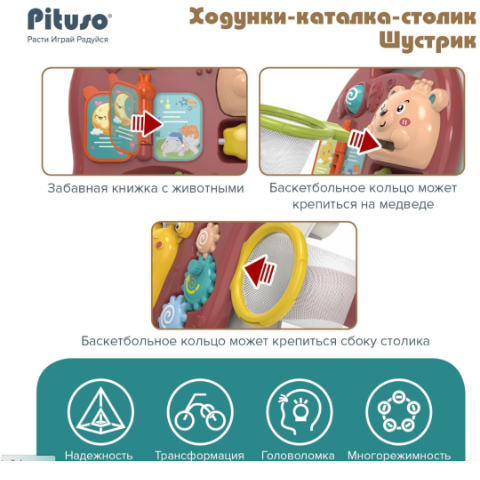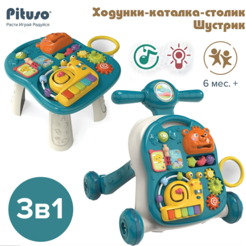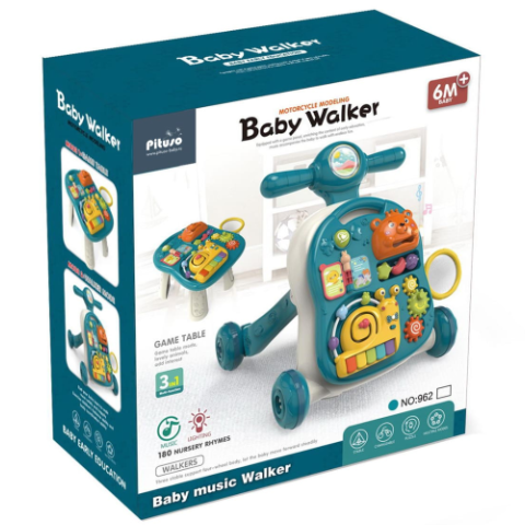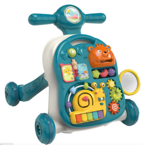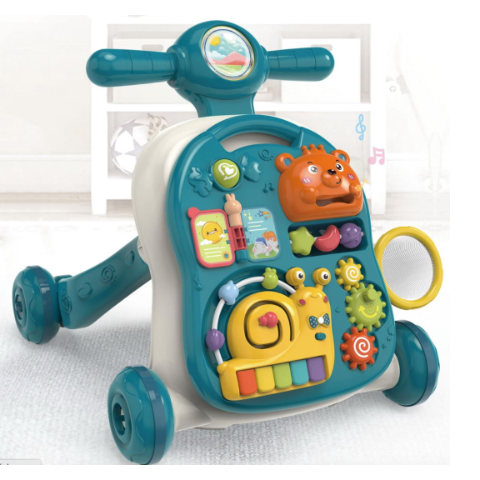 Acest centru educativ verde 3-în-1 este un partener perfect pentru micuții exploratori, combinând funcții de plimbător, masă de joacă și panou interactiv.