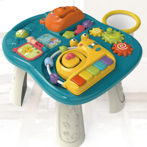 Masa interactivă este ideală pentru sesiuni de joacă și învățare, susținând dezvoltarea motorie fină și abilitățile cognitive.
