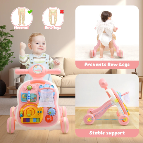 Acest premergător adorabil de culoare roz oferă suport stabil și sigur pentru primii pași ai copilului tău.