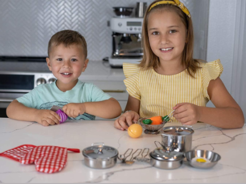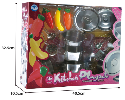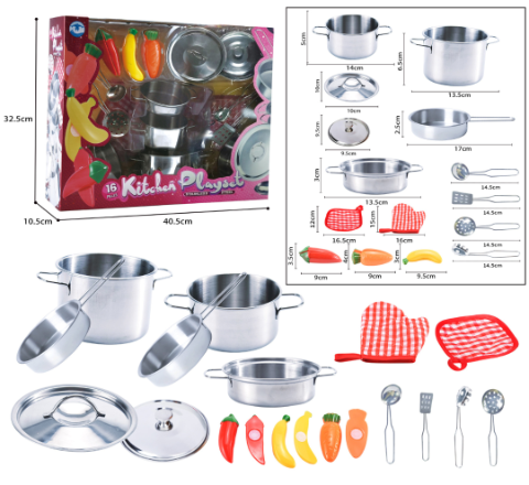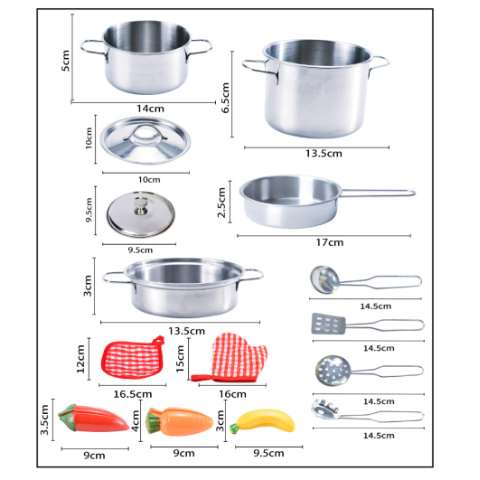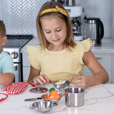 Acest set de gătit din metal aduce bucuria bucătăriei în lumea celor mici, stimulând imaginația și dezvoltarea creativă.