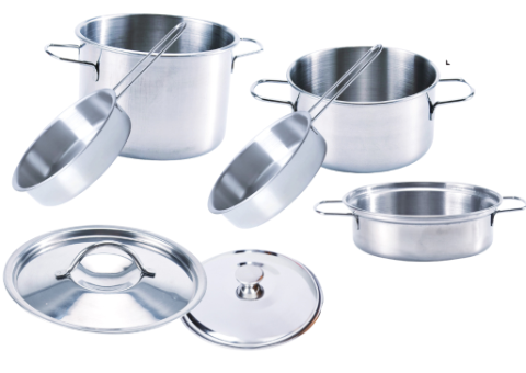 Tigaia și oalele strălucitoare din oțel inoxidabil sunt concepute să imite cu fidelitate ustensilele reale, oferindu-le copiilor o experiență autentică.