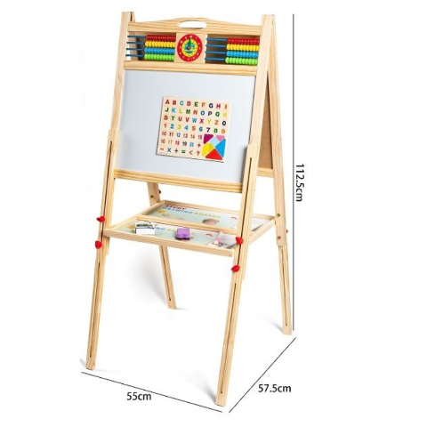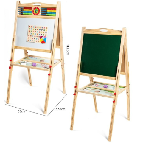 Această tablă multifuncțională din lemn oferă copiilor o modalitate interactivă de a învăța și de a-și exprima creativitatea.