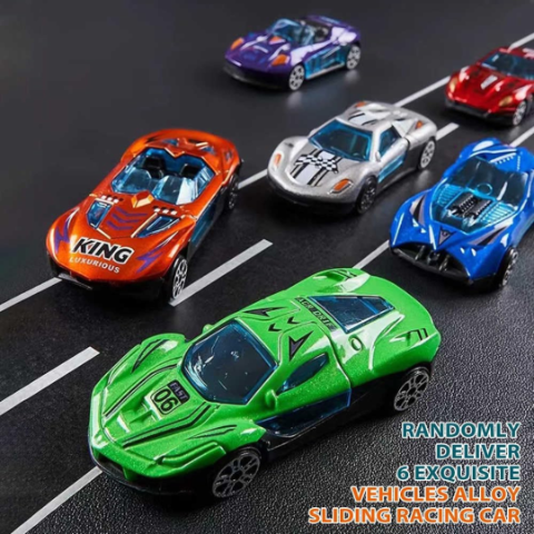 Mașinuțele incluse 6 buc. sunt fabricate din aliaj rezistent, fiind disponibile în culori și modele aleatorii.