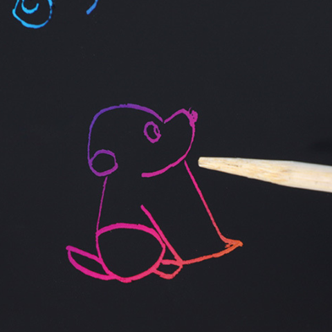 Pe lângă paginile de colorat, setul vine și cu foi speciale de răzuire, unde cei mici pot descoperi imagini ascunse prin zgâriere, stimulând curiozitatea și atenția la detalii.