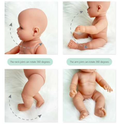 Copiii pot așeza păpușa în diverse poziții, dezvoltându-și imaginația și abilitățile de îngrijire.