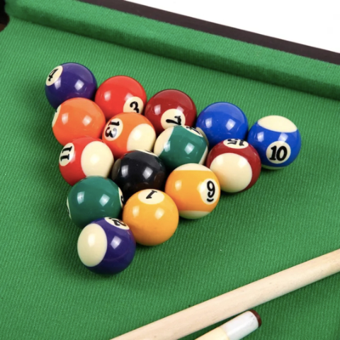 Include două tacuri, un triunghi pentru aranjarea bilelor și cretă pentru o aderență mai bună la lovituri.