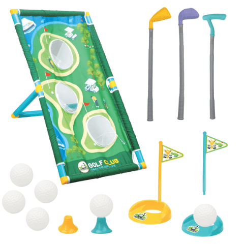 Cele 6 mingi ușoare și suporturile de lansare aduc realism în jocul de golf, fără riscuri pentru cei mici.