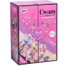 Deschiderea cutiei dezvăluie un suport în formă de inimă și zeci de accesorii strălucitoare gata de personalizat.