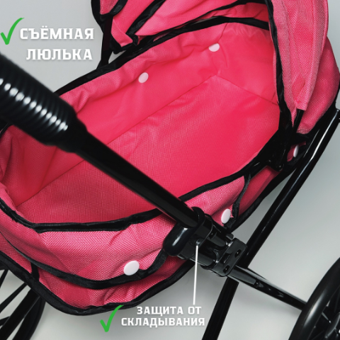 Acest cărucior roz vibrant pentru păpuși aduce stil și funcționalitate în joaca celor mici.