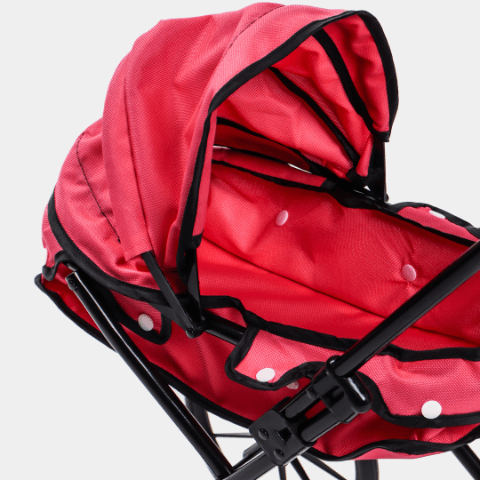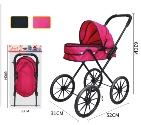 Acest cărucior roz vibrant pentru păpuși aduce stil și funcționalitate în joaca celor mici.