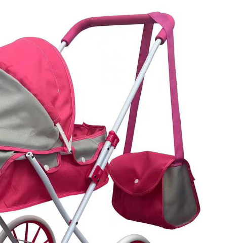 Căruciorul include și o gentuță elegantă, perfectă pentru transportarea accesoriilor păpușilor în orice aventură.