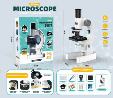 Pachetul include o gamă variată de accesorii, de la lame pentru mostre până la un ghid de utilizare, care îi va ajuta să devină adevărați mici cercetători.