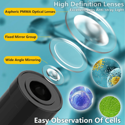 Microscopul oferă posibilitatea de mărire până la 4800x, fiind ideal pentru experimente și explorări științifice.