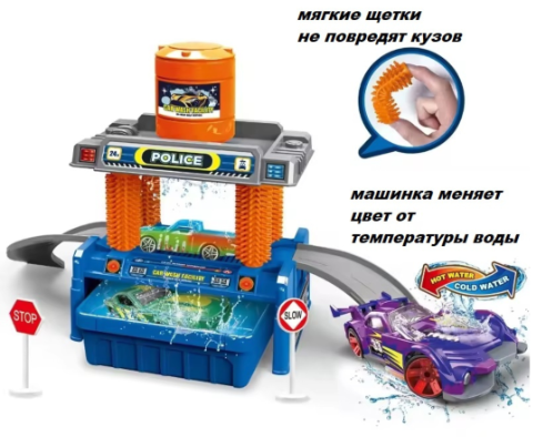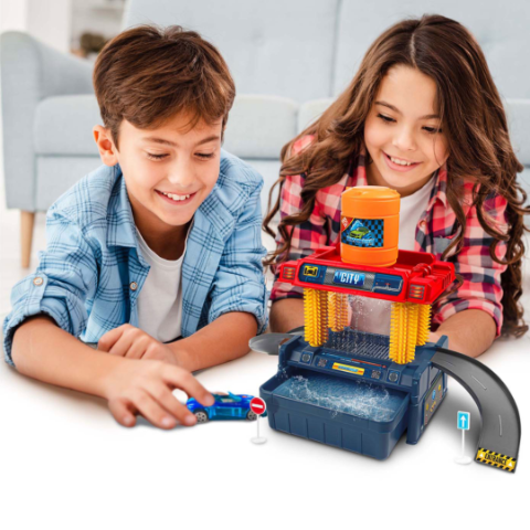 Creează o experiență unică de joacă cu spălătoria auto interactivă care schimbă culoarea mașinii sub influența apei calde și reci.