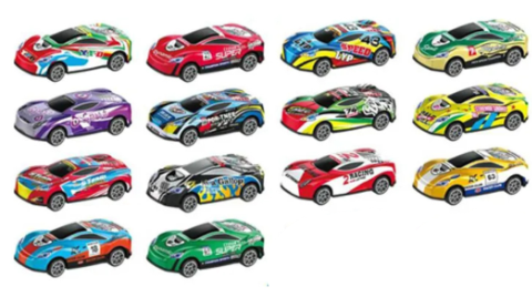Include 14 mașinuțe colorate, fiecare cu un design unic, care transformă joaca într-o adevărată competiție de curse.