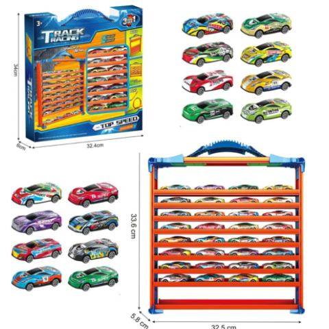 Această pistă de mașinuțe 3 în 1 combină organizarea eficientă cu distracția captivantă, fiind perfectă pentru copiii pasionați de viteză.