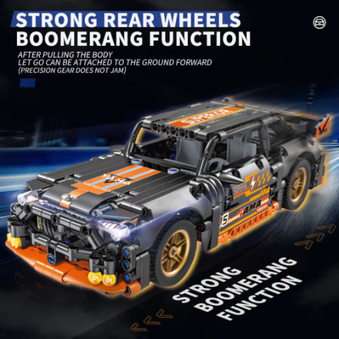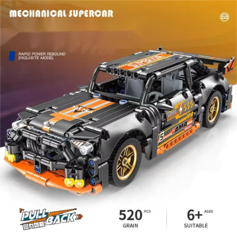 Spoilerul masiv și liniile aerodinamice asigură un aspect dinamic, iar construcția este o activitate captivantă care dezvoltă abilități creative și motrice.