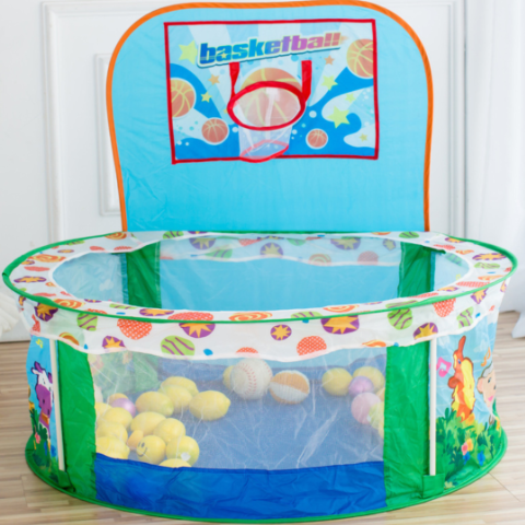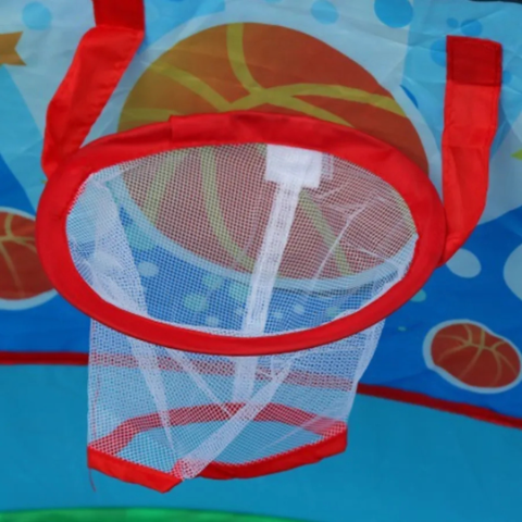 Panoul cu coș de baschet adaugă un element interactiv, invitând micuții să exerseze aruncările într-un mod distractiv.
