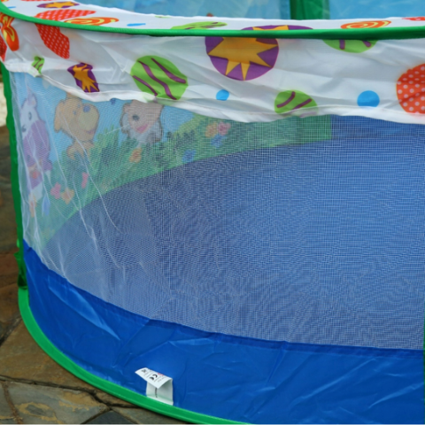 Lateralele din plasă oferă vizibilitate și siguranță, permițând părinților să supravegheze joaca celor mici.